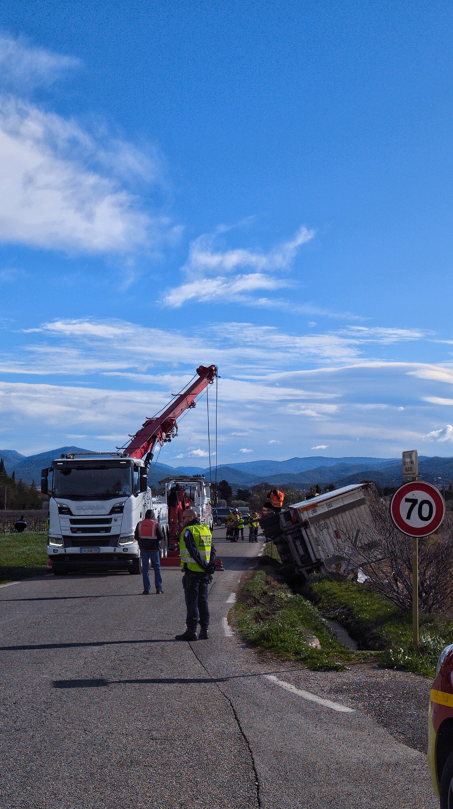 If I didn’t, I would end up like the van driver being hauled out of the adjacent ditch. They got caught out, as their discussion with the wind waned.
